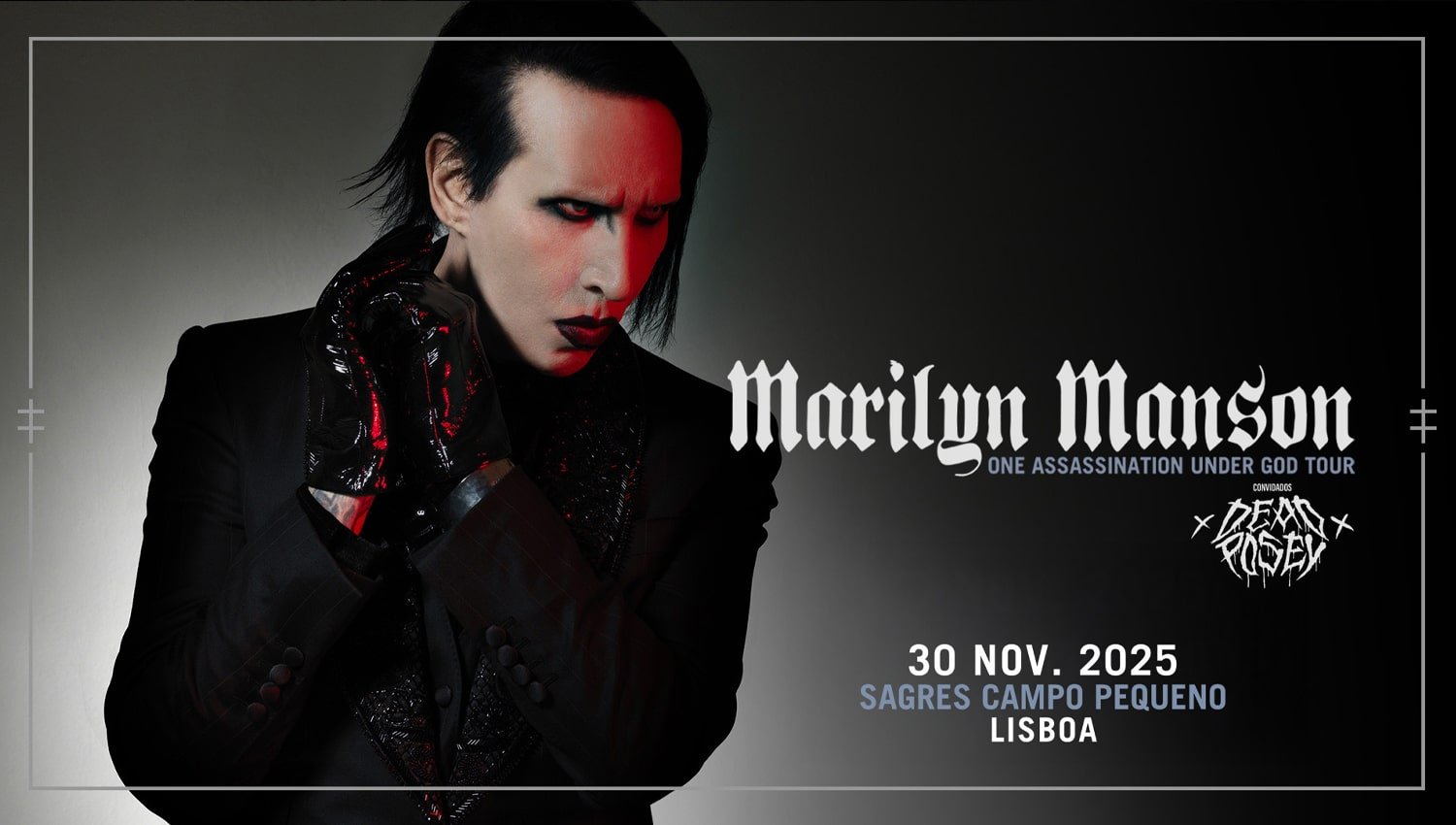 Mais de três décadas após ter dado os primeiros passos num mundo que, nitidamente, não estava preparado para ele, MARILYN MANSON permanece uma figura singular no panorama da música contemporânea — um artista que desafia convenções e leva o seu público a confrontar os lados mais obscuros da sociedade e de si próprios. Por tudo isso, esta passagem da One Assassination Under God Tour por Portugal afirma-se como mais do que um simples concerto de rock — será uma celebração da resiliência e do impacto cultural de MARILYN MANSON ao longo de mais de 30 anos. A produção visual, promete transportar os fãs para um universo sombrio e perturbador, onde a música e a performance se fundem numa experiência sensorial intensa.